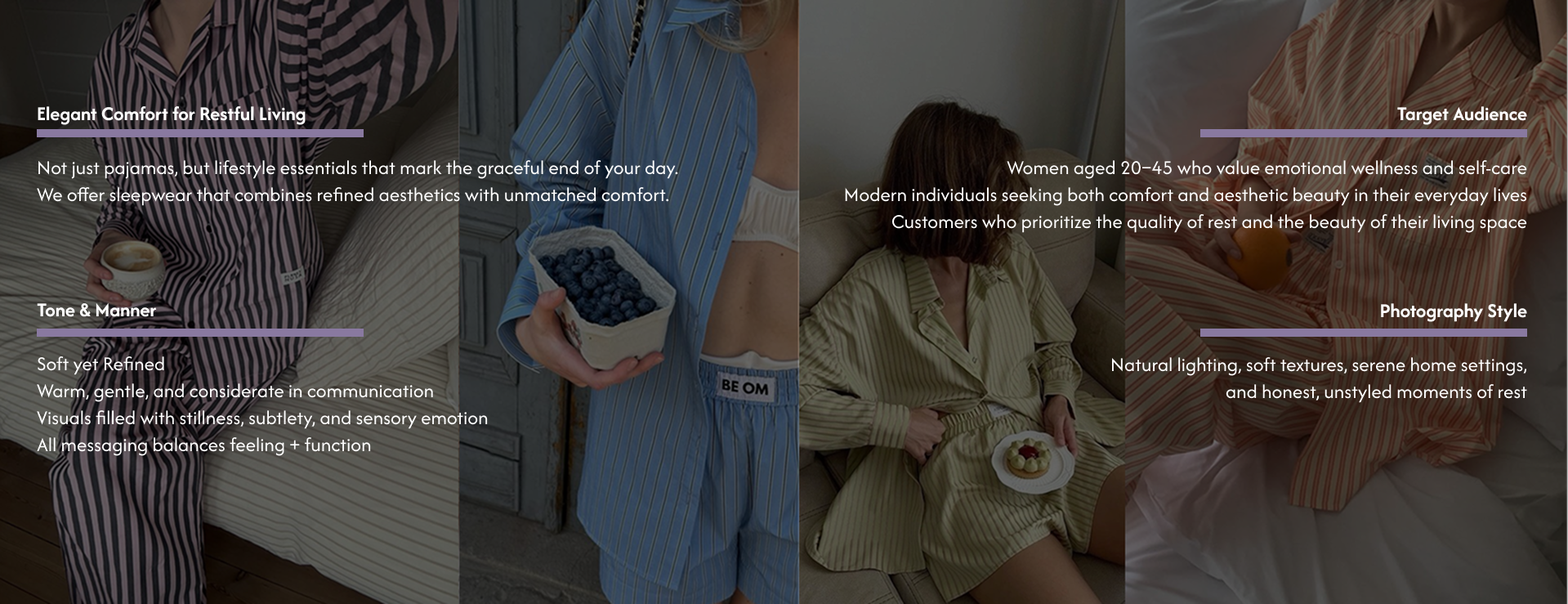 “ja:am” is the Korean word for sleep — a moment of peace, warmth, and return to self.Our brand is for modern lives in motion, where comfort is essential and beauty never fades, even in stillness.
